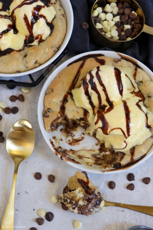 A delicious chocolatey recipe for two individual cookie dough desserts – just like the pizza hut one!