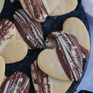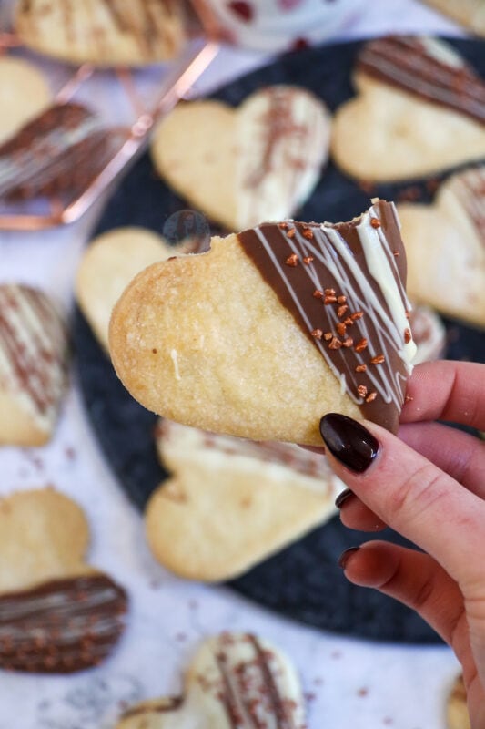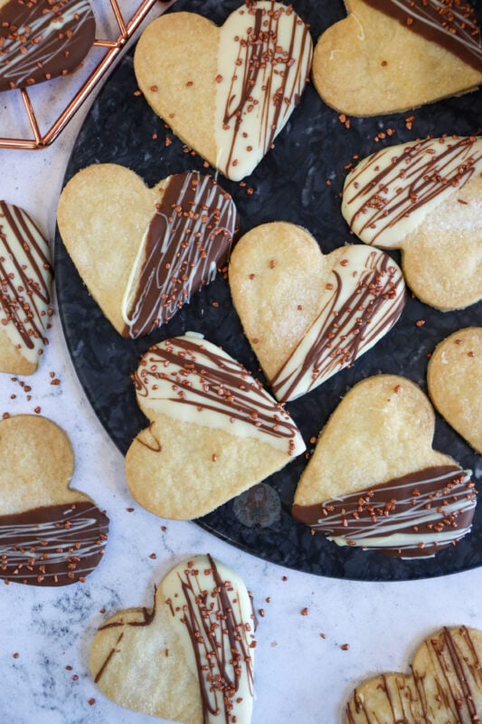 Easy three ingredient shortbread hearts coated in white & milk chocolate – perfect easy bake!