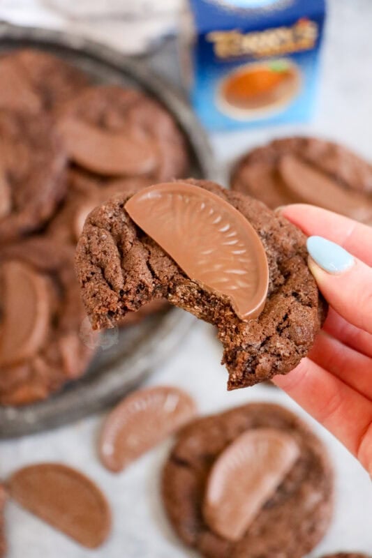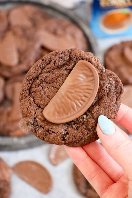 Not needing chilling means you can get to my favourite cookies ever, quicker. Honestly, these are genuinely my favourite cookie recipe I have, partly because of the Terry’s chocolate orange obsession I have going on, but that’s not entirely it. I genuinely just think the actual cookie is insane! It’s such a wonderful mix of chewy, gooey, and delicious. If you bake it for longer, it’ll get crunchy too.