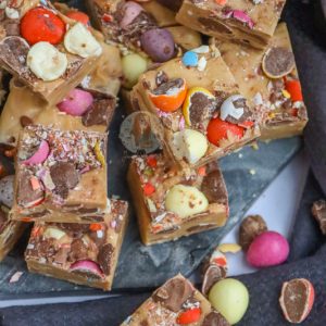 However, you could easily use whatever you fancy. I’ve made this using just Galaxy eggs, Creme Eggs, Twirls, etc etc and I honestly just don’t get bored of making it. I know some chocolates aren’t for everyone, so its an ideal treat. However, it is a bit different because its not like my usual ‘cheats fudges’ but thats also why I love it.