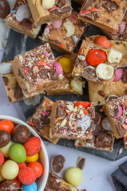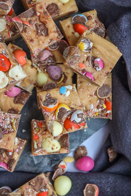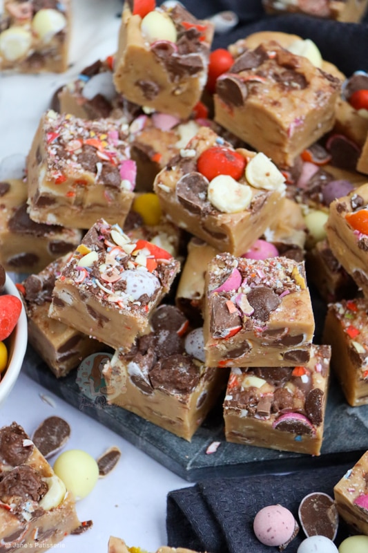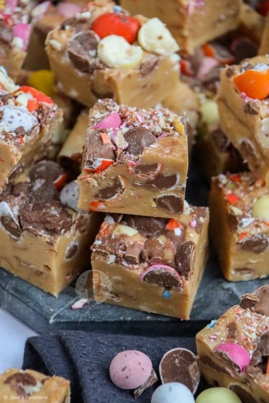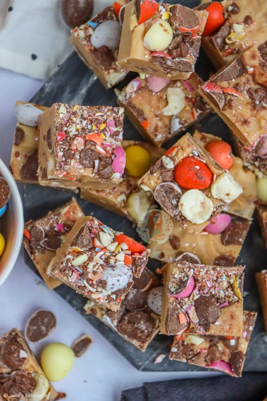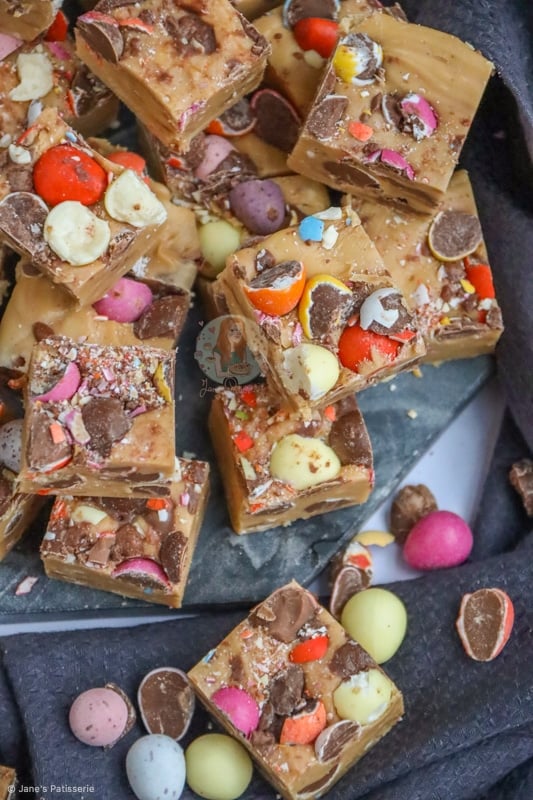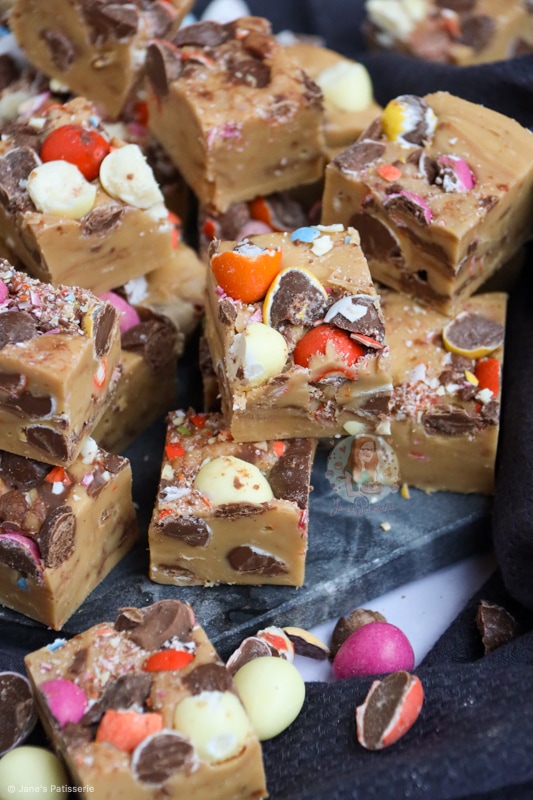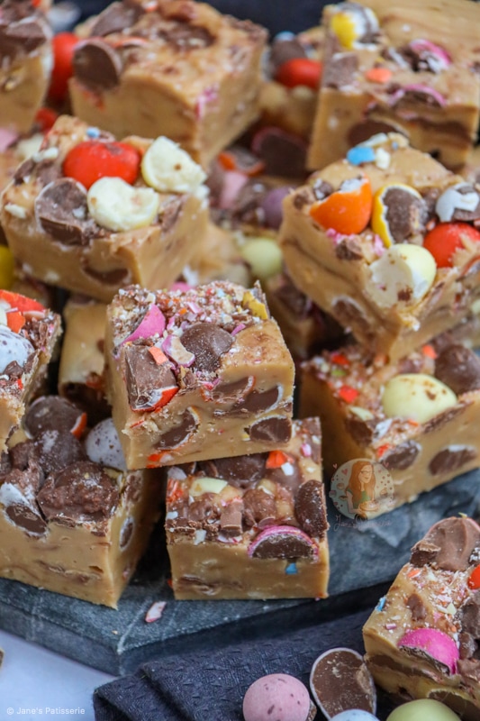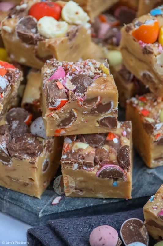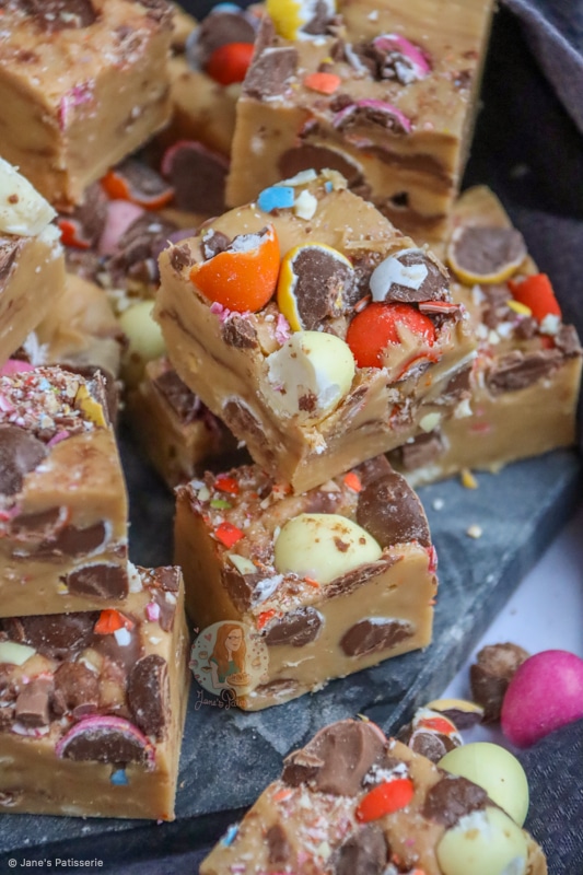 Easter fudge made with a classic white chocolate fudge, stuffed with all of your favourite Easter chocolates!