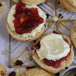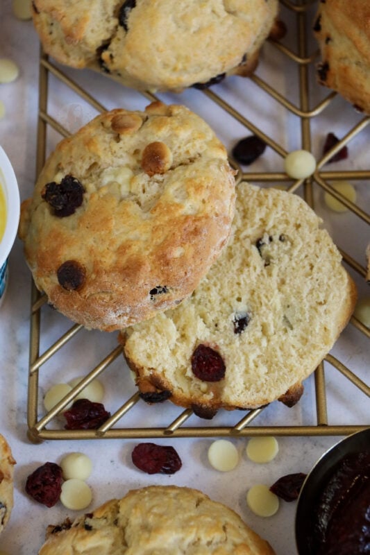 Delicious light and fluffy white chocolate & cranberry scones – perfect for afternoon tea!
