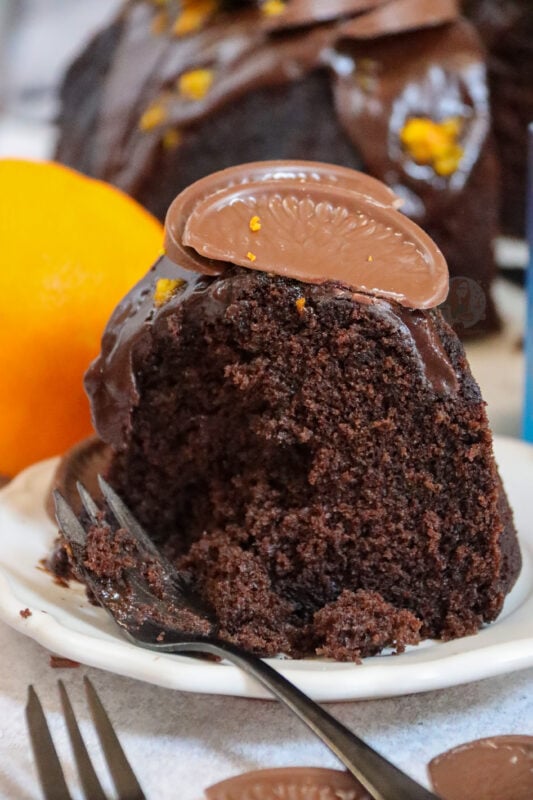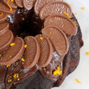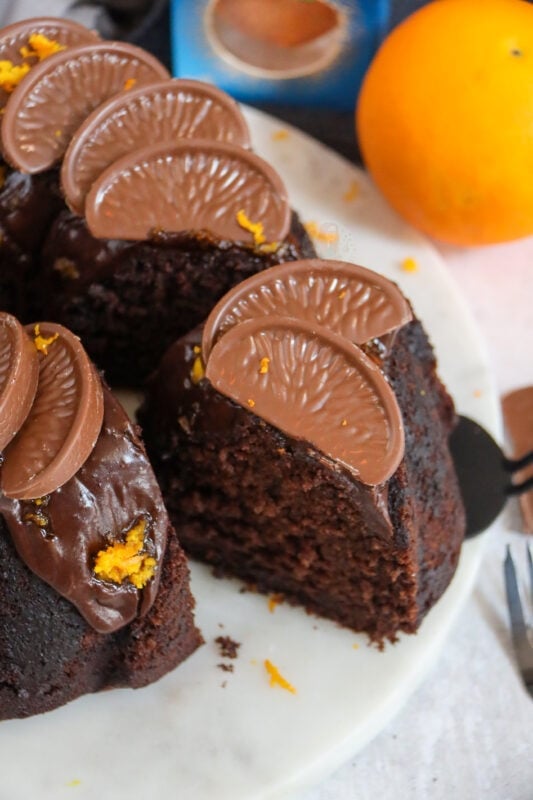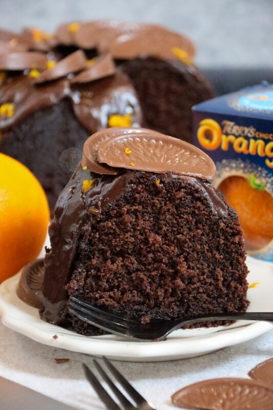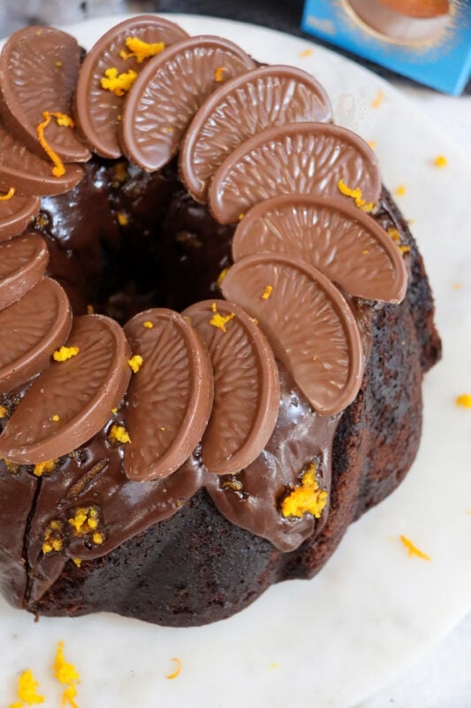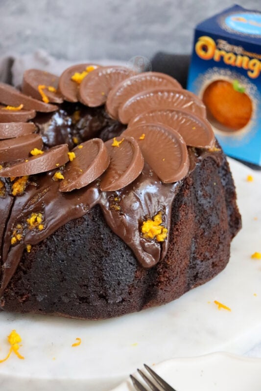 - Pour over the bundt cake and smooth/spread over. Add on a few chocolate orange segments and sprinkles over some orange zest. Serve, and eat it all!