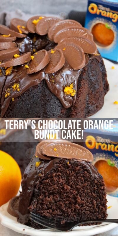 Chocolate & orange zest bundt cake with chocolate orange drizzle, and a dash more of Terry’s chocolate orange!