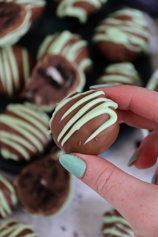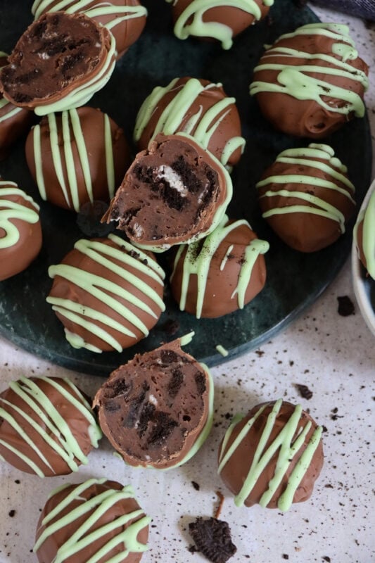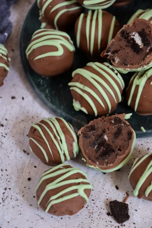 Deliciously minty chocolate peppermint truffles with a crunch of Oreo inside – perfect for wedding favours, birthdays, or just because!