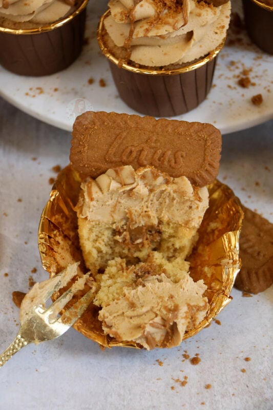 Amazing and delicious Biscoff cupcakes with a brown sugar sponge, Biscoff buttercream, Biscoff biscuits and more!