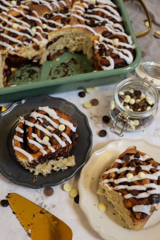 Seriously, these rolls are full of a deliciously sticky vanilla sugar and chocolate chips, with a sweet bread recipe binding all the goodness together. They’re SO moreish!