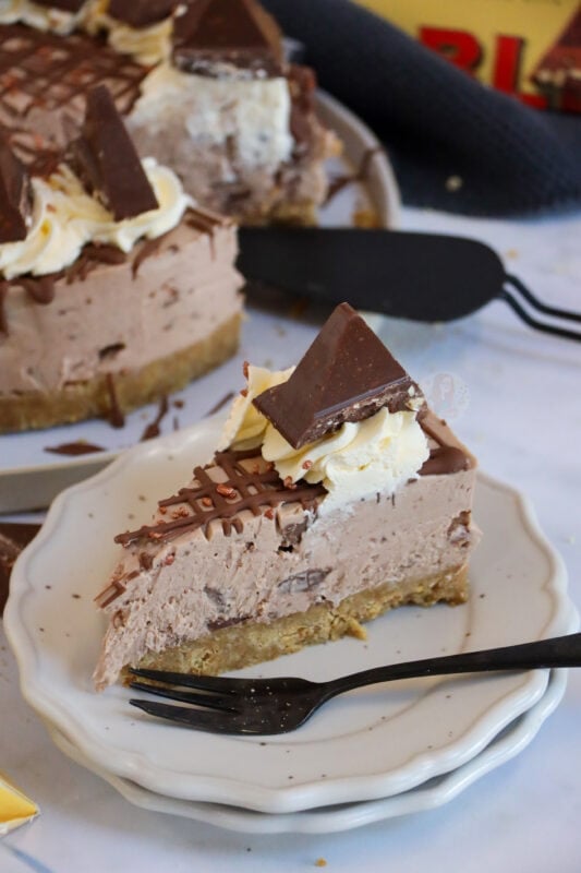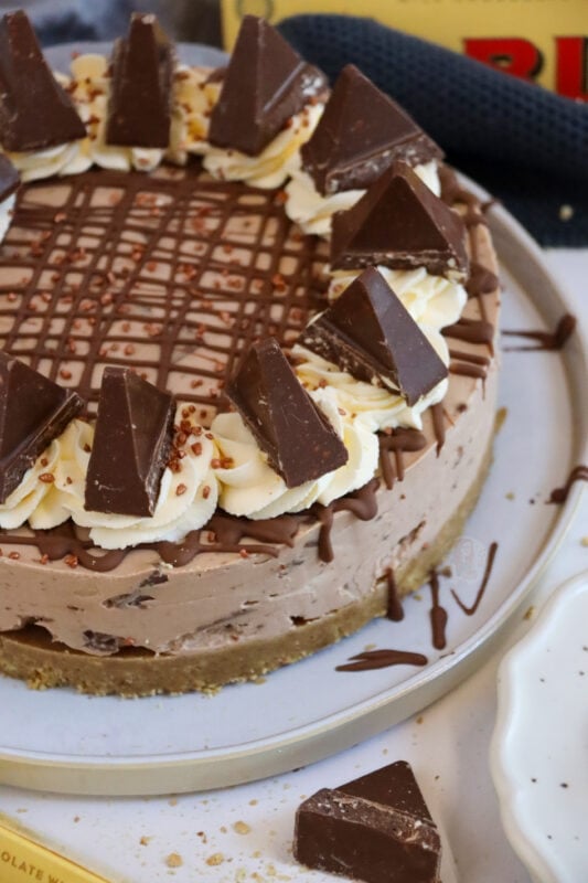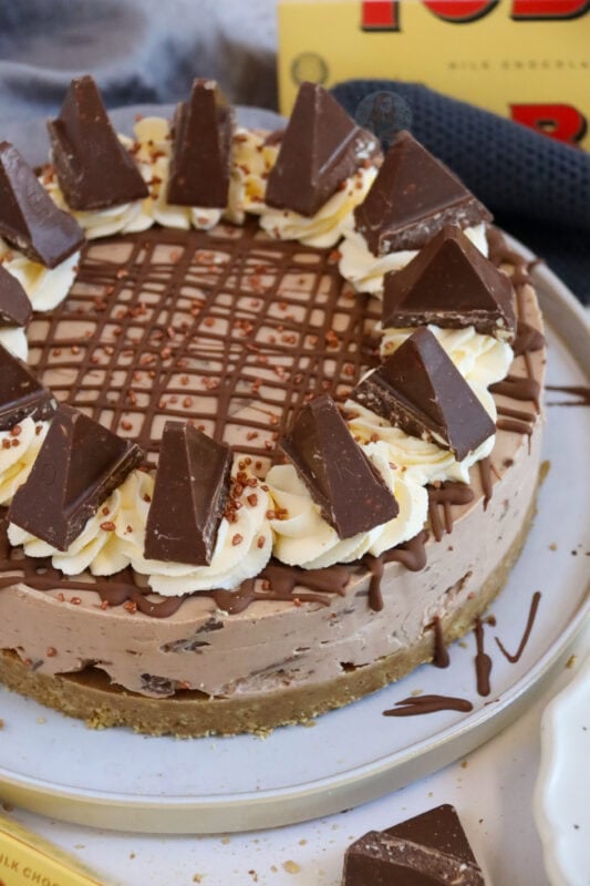 Creamy chocolatey Toblerone cheesecake, with a buttery biscuity base – and its no-bake!