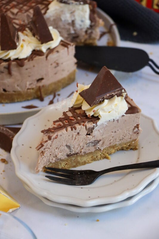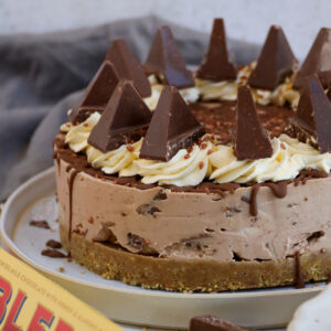 After the downright and utter success of my no-bake caramel Rolo cheesecake and my no-bake chocolate orange cheesecake, I realised I had to experiment on more ‘branded’ chocolate cheesecakes that SO many people are asking for.. such as this beauty. I literally cannot count how many people have asked for this recipe so I hope its okay!