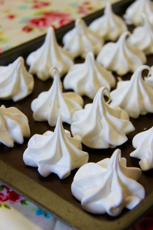 - Pipe the meringues onto the baking sheets - I use a Wilton 1M tip to make my little meringue shells