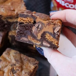 Super chocolatey chocolate chip brownies swirled with Biscoff cookie butter spread making the BEST Biscoff brownies EVER!