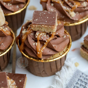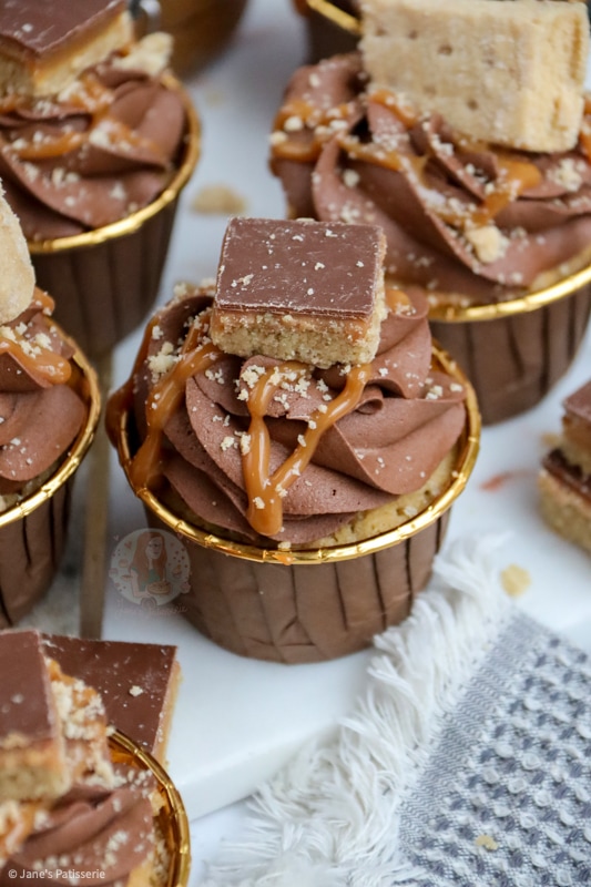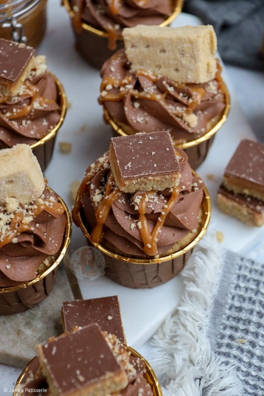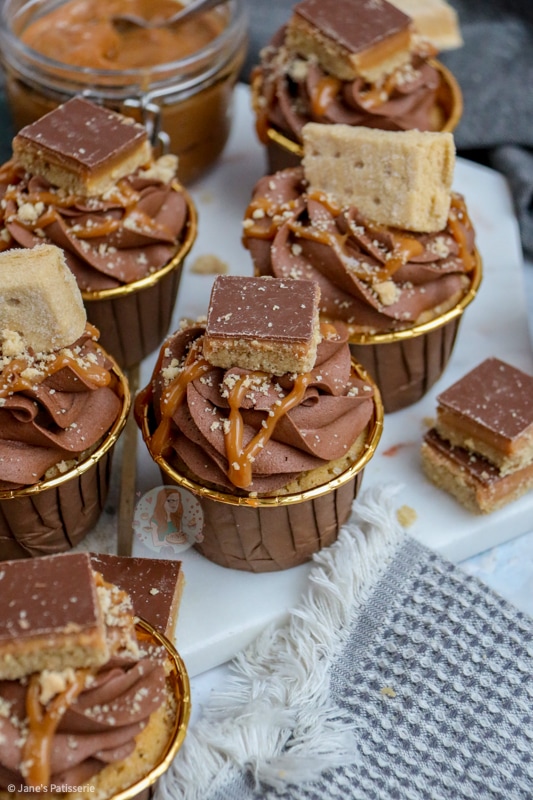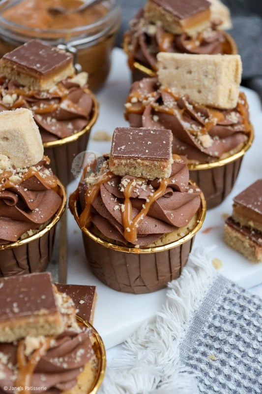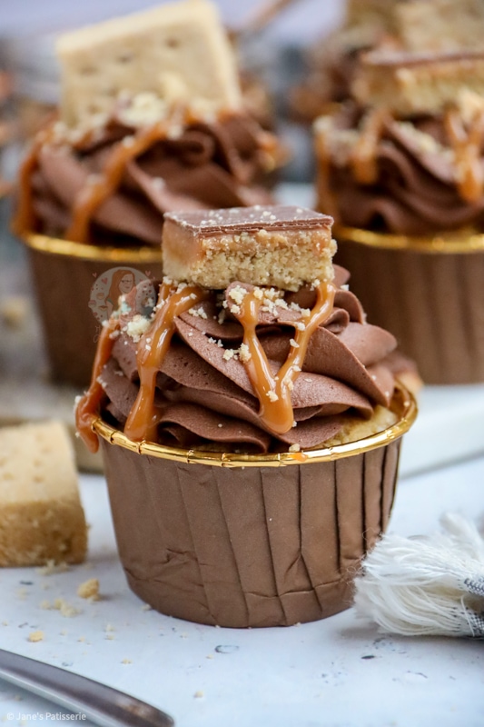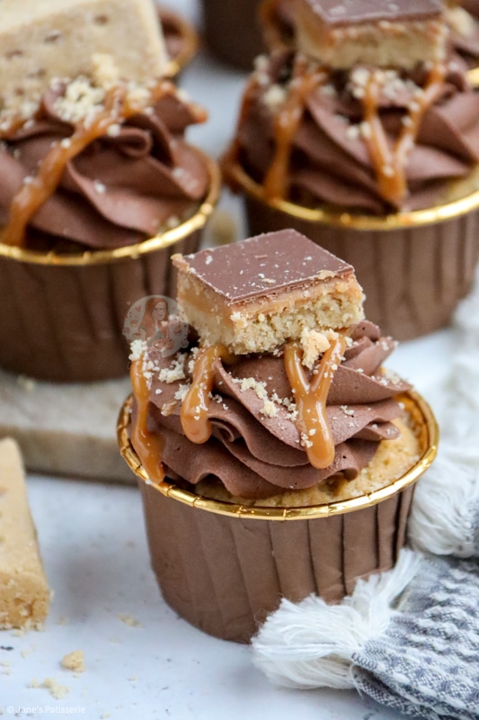 You can of course use a different topping – such as the glorious fudge buttercream from my chocolate fudge cupcakes – the most indulgent topping EVER. Or, you could skip buttercream all together and just do a drizzle of melted chocolate! The correvt topping to me however is an extra drizzle of caramel, and either a shortbread bite, or a mini millionaires!