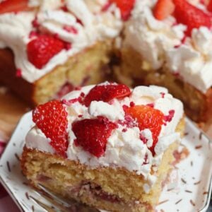You can try this cake with other fresh fruits, such as raspberries, blueberries, blackberries etc… I just love strawberries because Eton mess really is classically strawberry! Also, with Wimbledon coming up, it’s an ideal bake!