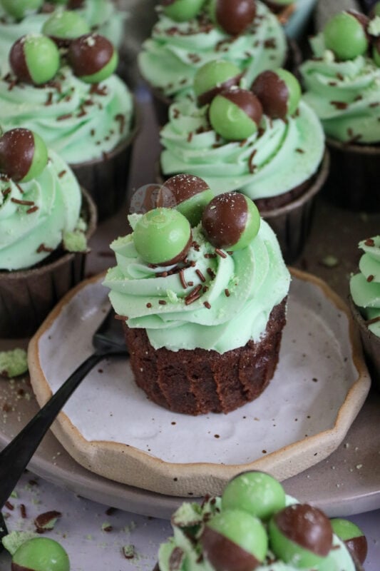 Hiya! Take a look at my Vegan Chocolate Orange cupcake recipe – just swap the orange for mint! Hope this helps! x