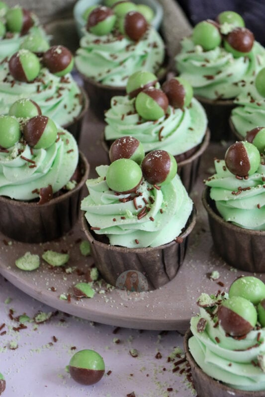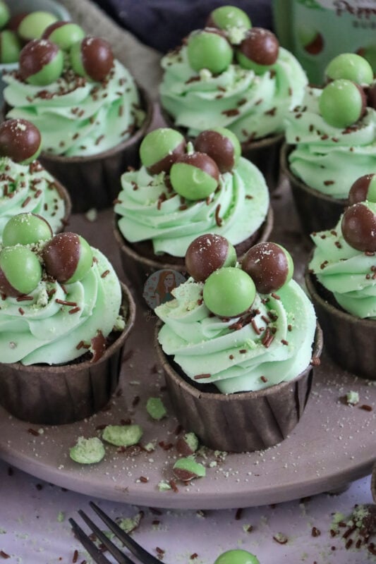 My friends all loved these. I’d made your mint aero cake for my friend’s birthday last week, it was a huge success as she is a Mint Aero fiend and just can’t get enough of the bubbles. Not fancying making a big cake each time, I found these. They were all gone in less than a day. I made a slight addition, as I used two-tone icing: a mixture of the green mint and a minted dark chocolate frosting too. I wanted to add a dark chocolate element to them, a bit like the drizzle on the cake to cut the sweetness. They looked so lush and tasted fab with the twist! Thanks for your recipes. x