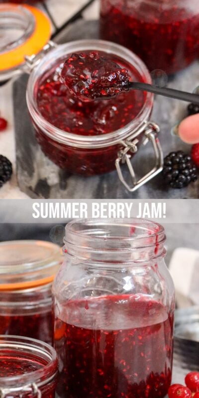 A homemade summer fruits jam – perfect for use in cakes, in a jam tart – or even spread on toast!