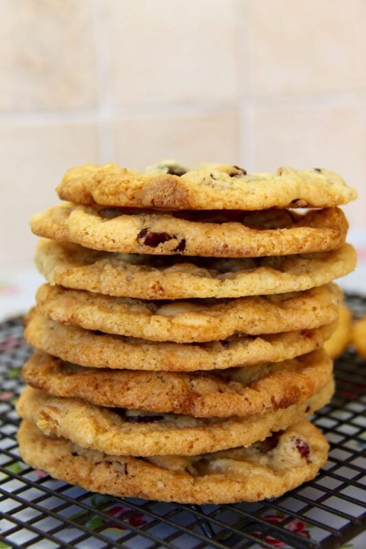 Hi Jane. I made these using cherries instead of cranberries and the cookies turned out quite thin and had no shape to them. I also made your Nutella and biscoff cookies and they turned out perfect. Could I add cornflour to the recipe to make them more like the Nutella and biscoff or is this just how theses particular ones bake? Thanks 🙂