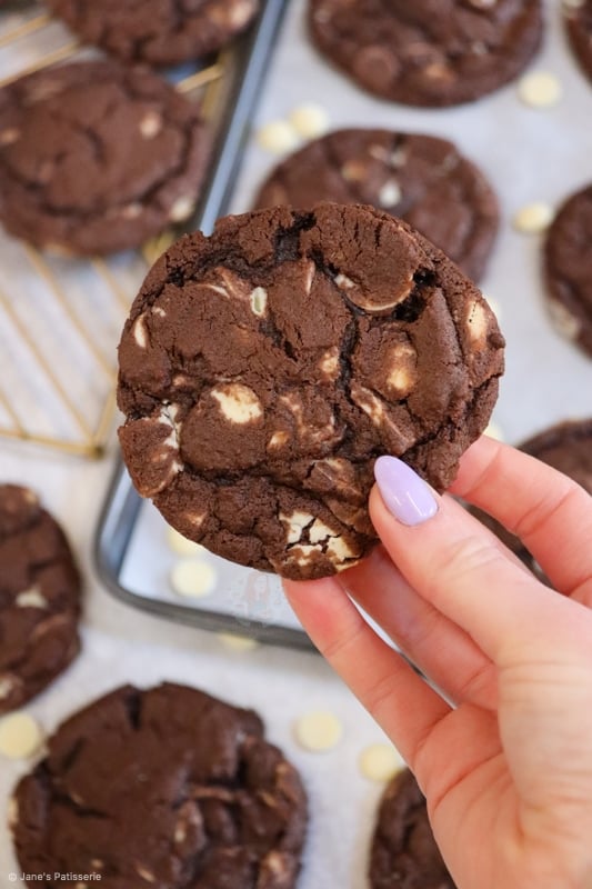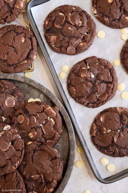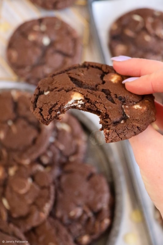 You can find a recipe for gluten free chocolate chip cookies here if you would prefer those over double chocolate, or if gluten free is for you but cookies aren’t – check out my recipes for gluten free vanilla cupcakes and gluten free carrot cake – delicious!