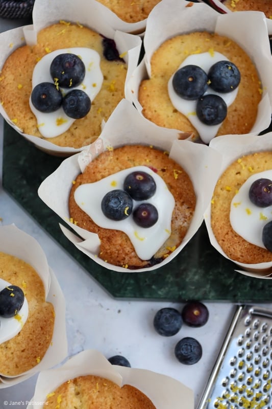 - Fold through the lemon zest and blueberries then pour the mixture evenly into the 12 cases