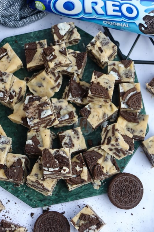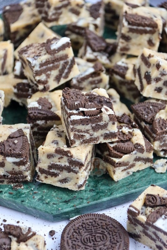 As always, this recipe is super adaptable to suit your taste! You can use another biscuit if you prefer but Oreos are by far my favourite. I think the chocolatey biscuit with the creme filling suits the plain fudge perfectly!