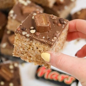 When it comes to crispy squares like this, they are quite simple. I have a few different ones such as my Nutella Rice Krispie treats, and my biscoff Rice Krispie treats, but I love these ones even more because of the mars bar in the base of the recipe.