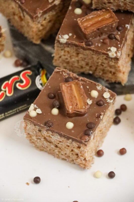 I love Mars Bars, evident by my Mars Bar chocolate mousse recipe, but these are simply delightful. When I was little, Rice Krispie cakes were an absolute must at a bake sale, or at a party – and they still are now. They are very iconic when it comes to the chocolate bar world.