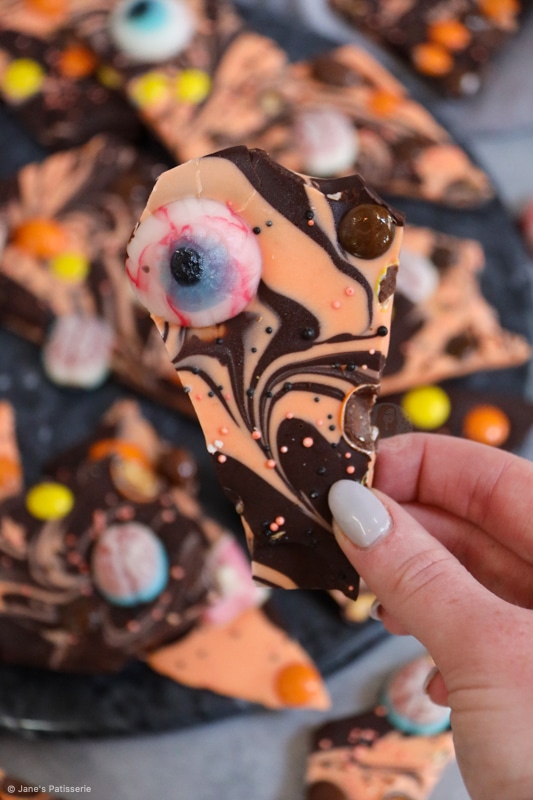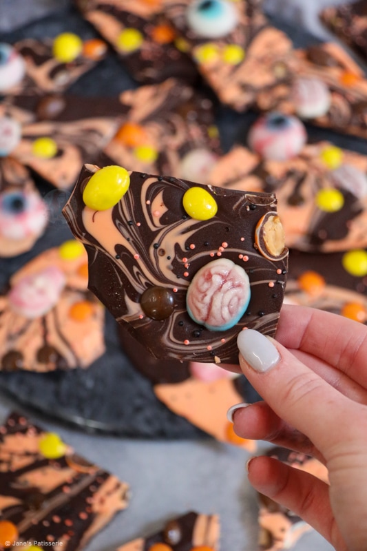 I always see posts on my blog or facebook fan page about how chocolate bark is a firm favourite for gifts! As you adapt the bark to any occasion, teamed with some truffles it makes the perfect homemade present or in this case, Halloween party treats!