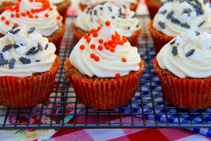 The spices in the cupcake mix are similar to a carrot cake, but has the little differences so that it suits the sweetness of the pumpkin perfectly – the sultanas make the cupcakes moist, and the walnuts give it the crunch you crave – so either one you choose you’ll love it, promise!