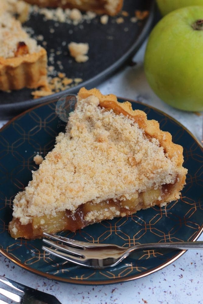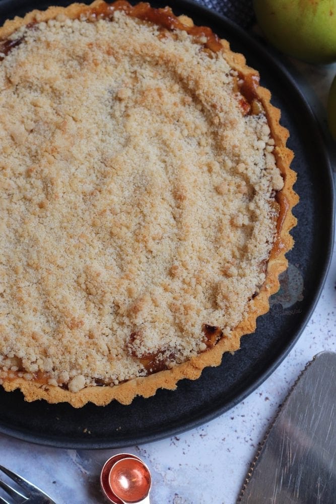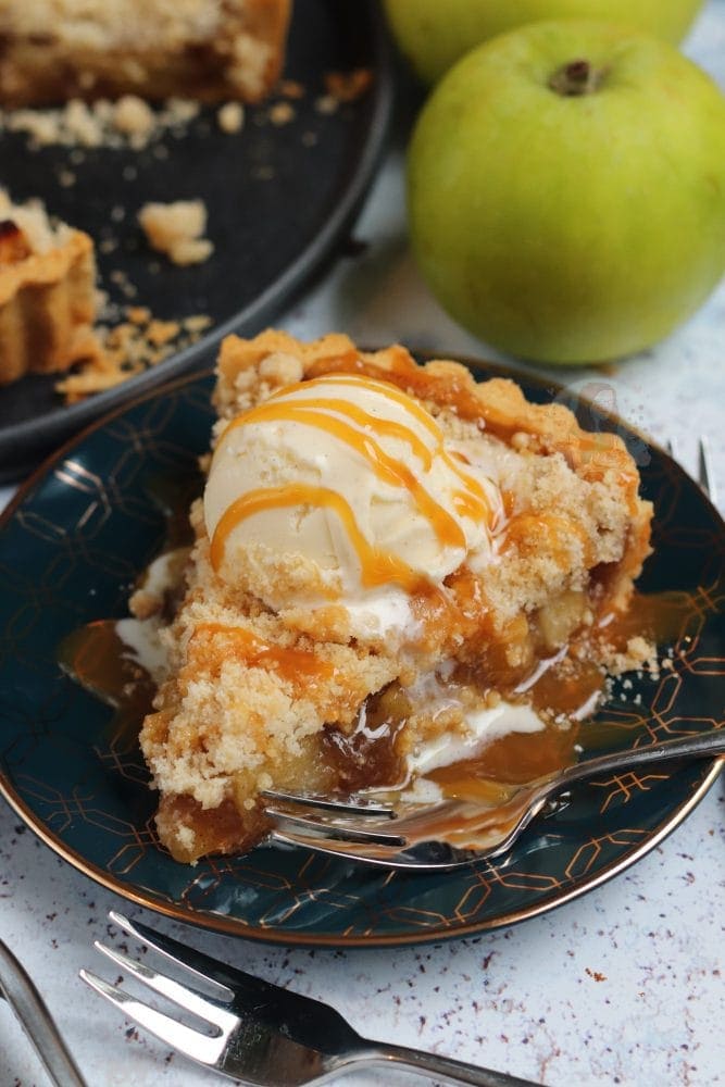 The sweet shortcrust pastry gives a nice lining to the dessert that everyone loves in a pie, as well as having the crumbly sweet & crunchy topping of the crumble is the perfect match to the gooey caramel apple layer in the middle. Hello heaven. You can use a shop bought shortcrust pastry if you want, there is no judgement here.