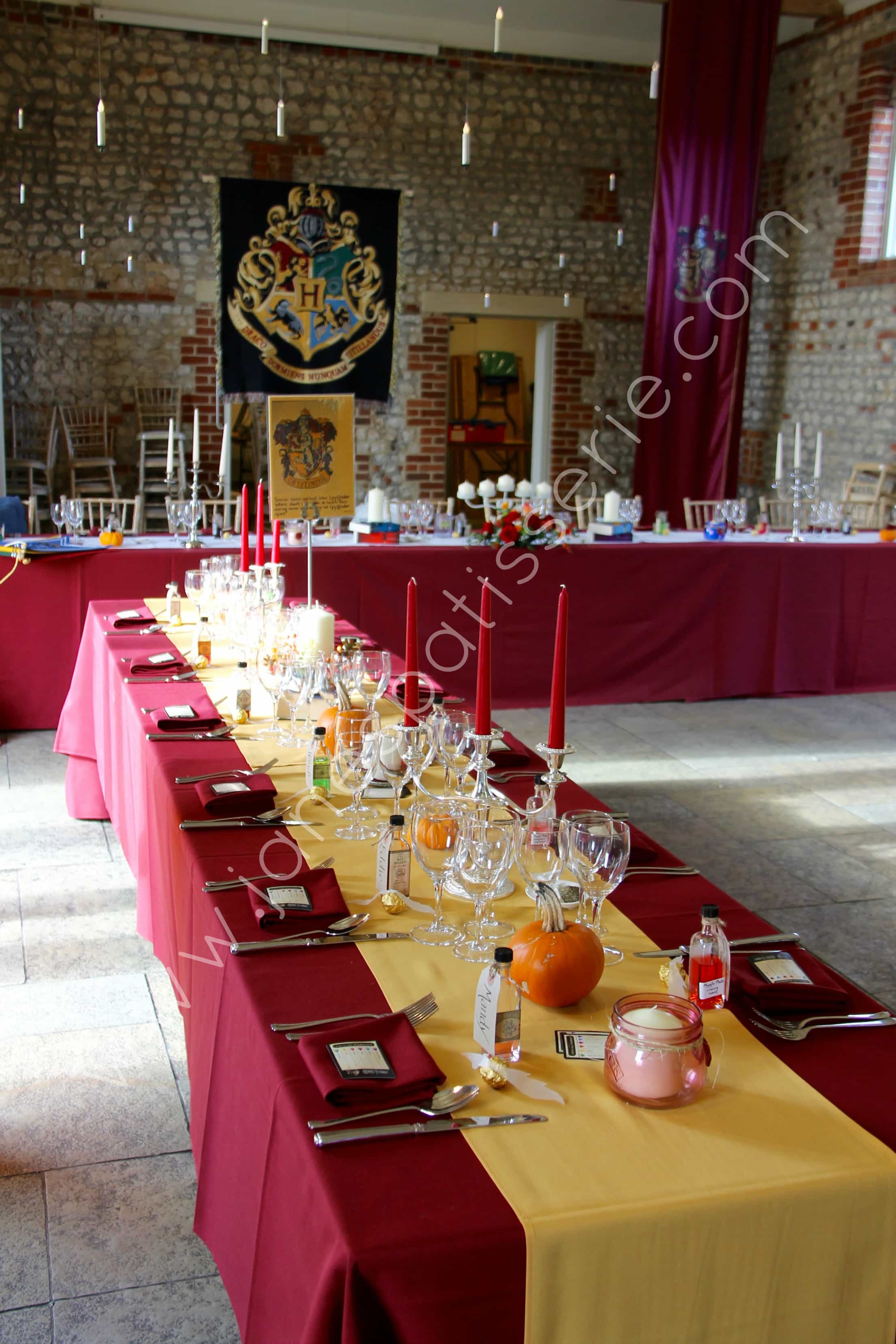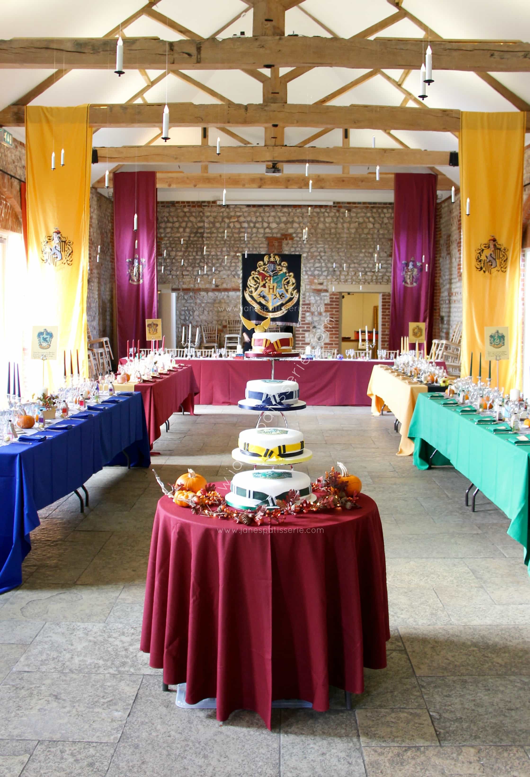 The Wedding Venue itself was this absolutely gorgeous little barn that had been dressed up with the house crests like they did in the films, and all of the table decorations were so inthralled with detail that it was amazing too see everything I love about the film, everywhere!! The colours were bright and vibrant, and everything was stunning!