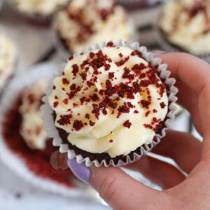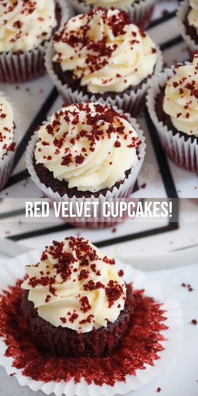 Deliciously light & fluffy red velvet cupcakes with a gorgeous cream cheese frosting!