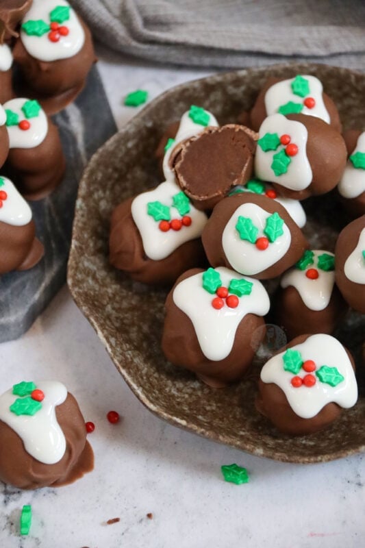 Deliciously chocolatey truffles made into mini Christmas puddings! Cute little gifts for the festive season!