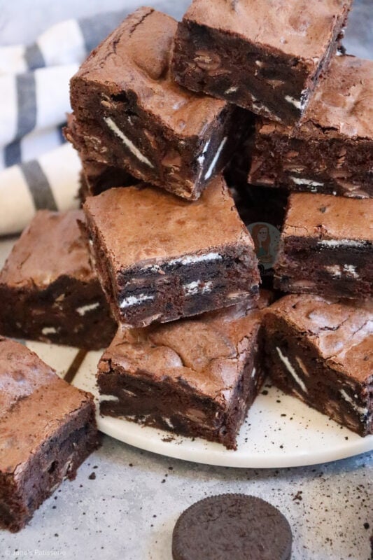 I have baked these brownies & the biscoff brownies, and what I noticed was, both the biscuits that i added to the batter had evaporated. When I cut through the brownies once cooled down you couldn’t see any biscuits. Although they tasted amazing there wasn’t much of the biscuit flavour, if you know what I mean?