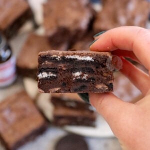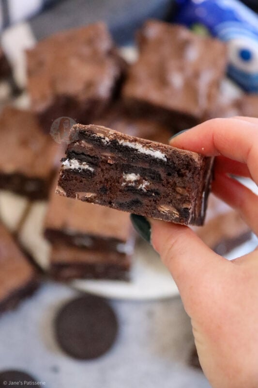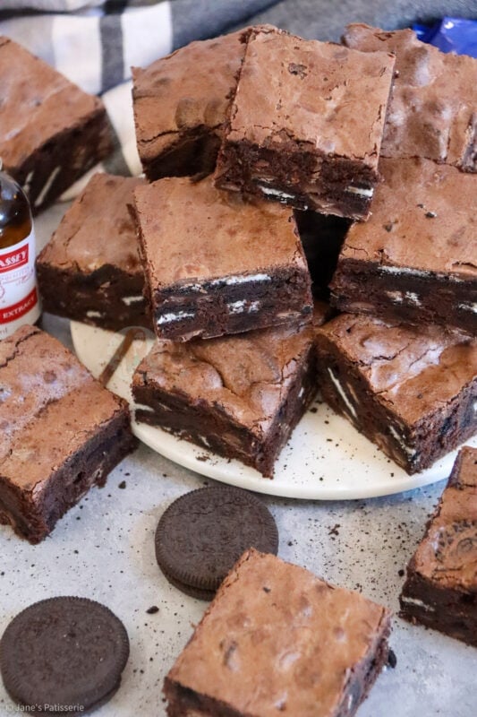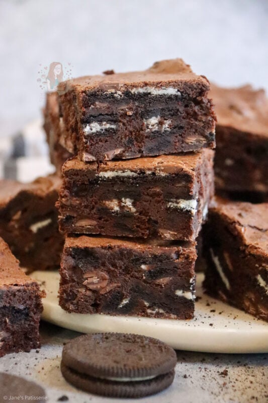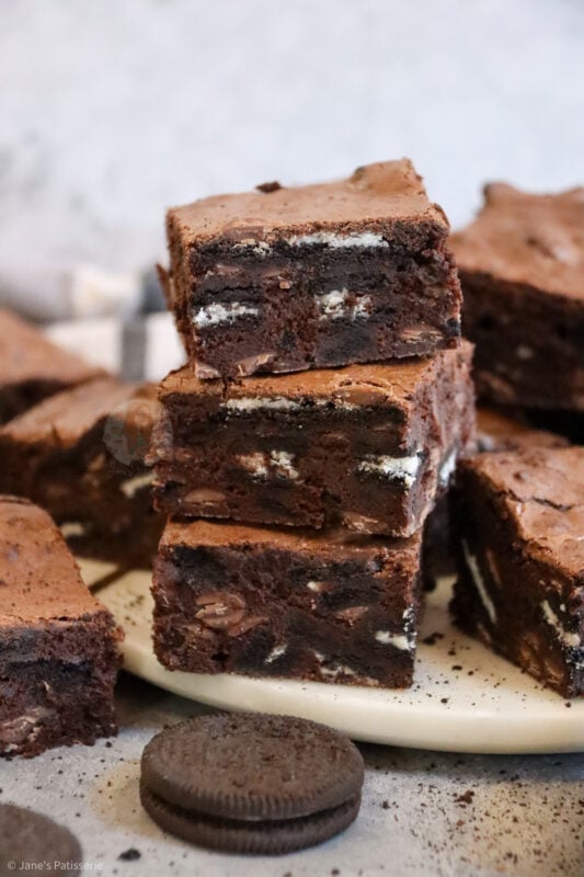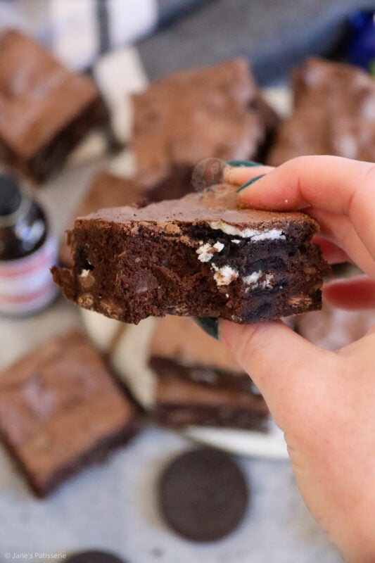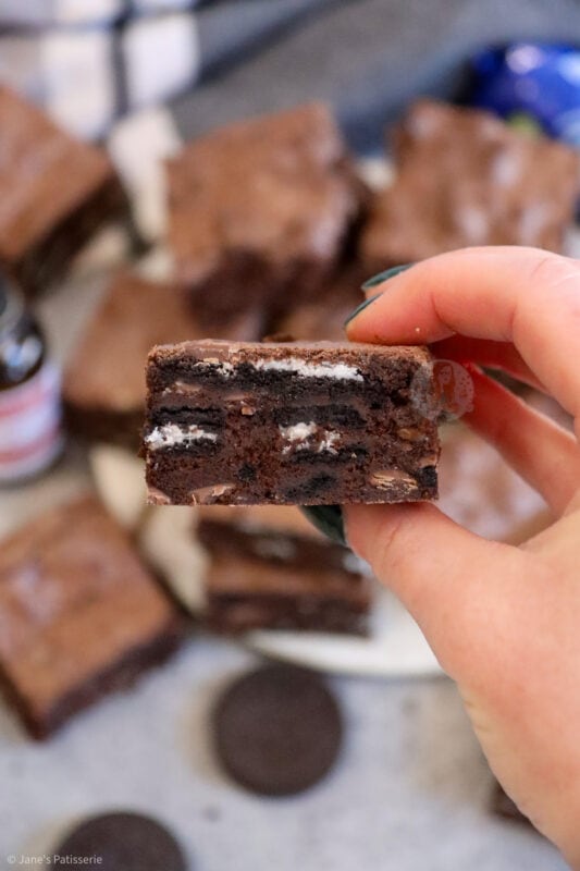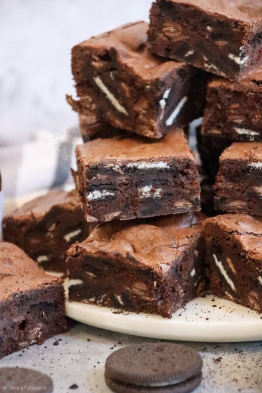 These brownies are truly irresistible and utterly delicious – seriously – this is my go to recipe for brownies, I have never found one more successful than this one, and that’s saying something! They are full of chocolate, gooey, and minty Oreoey goodness – but I always think Oreos are a winner in general anyway, especially on social media, you guys love them!