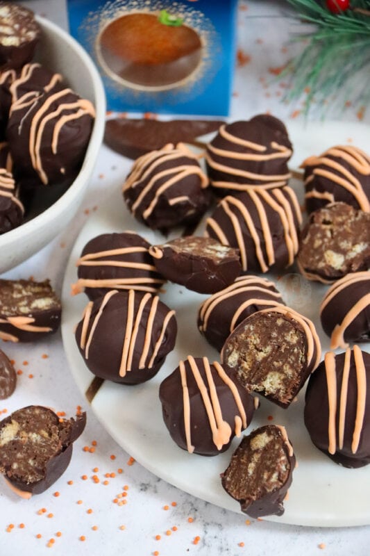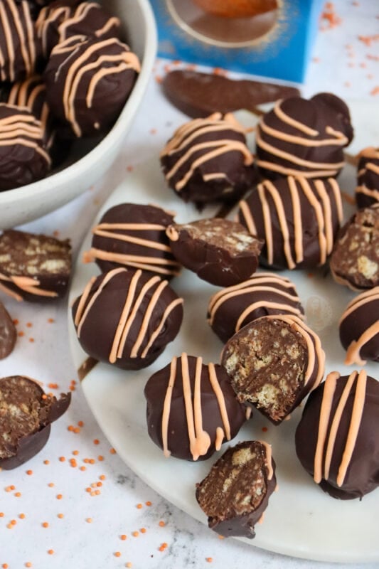 And as a side note for anyone who is skeptical about using biscuits in the truffles (like I was), it totally works! The biscuit chunks soften and just totally work in these truffles. You’re amazing Jane