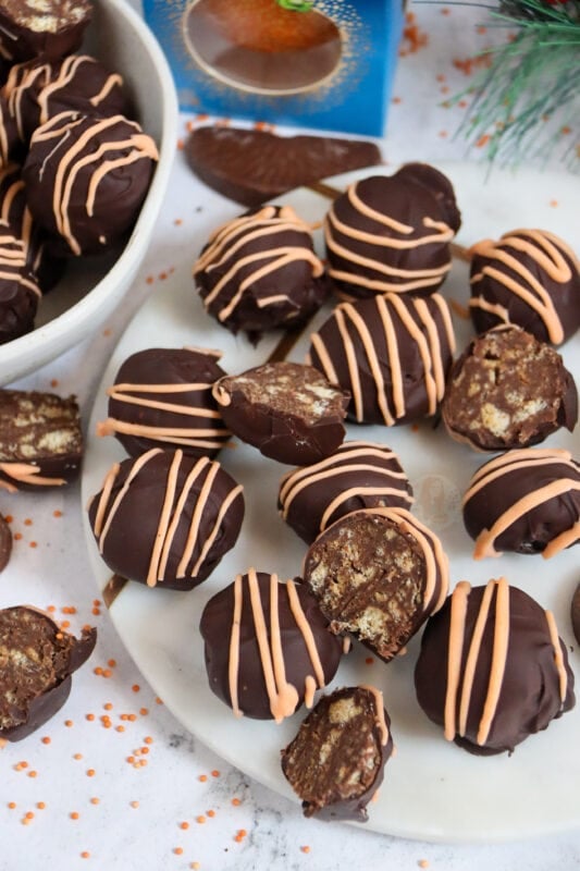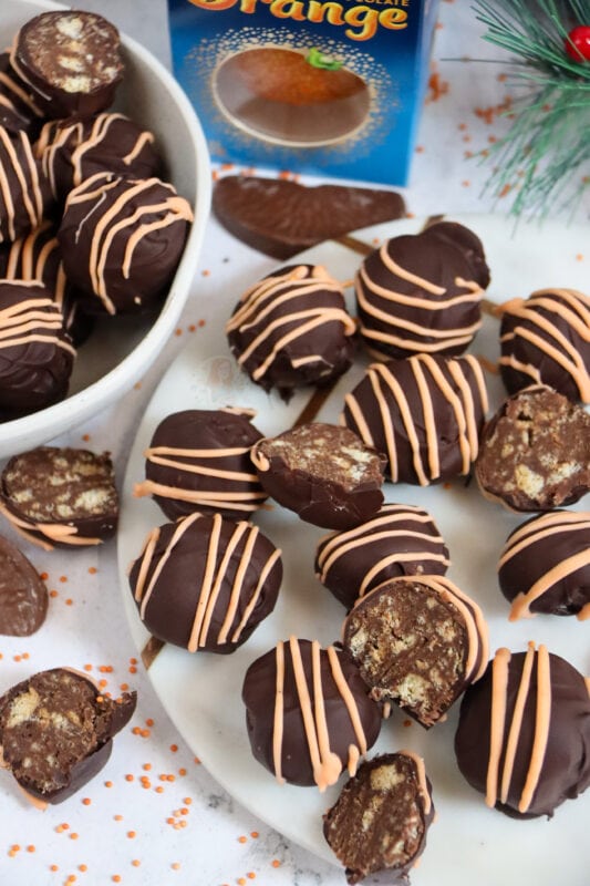 Hi I just made these but my terrys chocolate orange is now 157g so they have obviously started making them smaller! I just made the cream and biscuits also 157g to match your recipe (hope this was right) but my truffles have a very weird texture, unless there are two types of truffles – I’m new to baking since lockdown! They’re very soft even though they have been in the fridge for over 24 hours and almost like a cheese cake bite 🙄