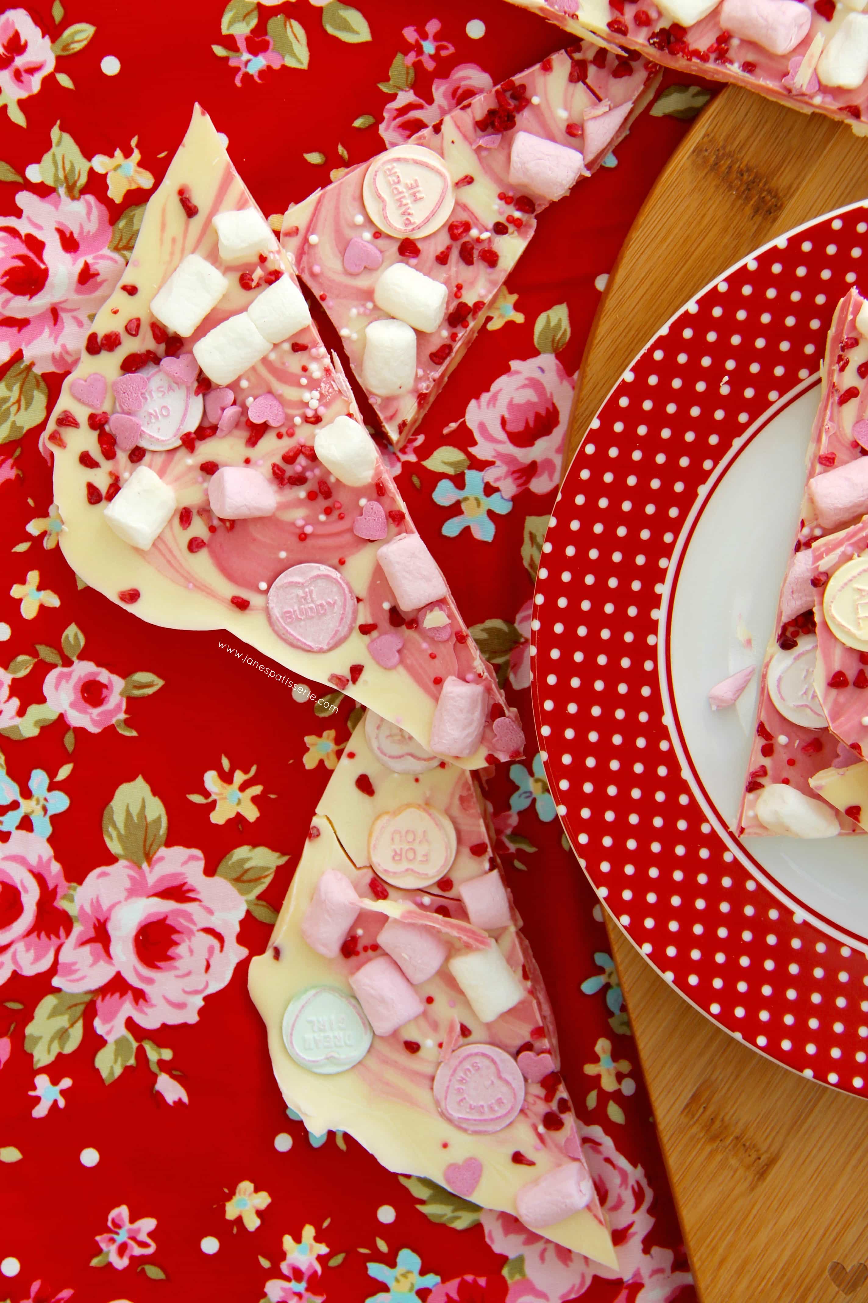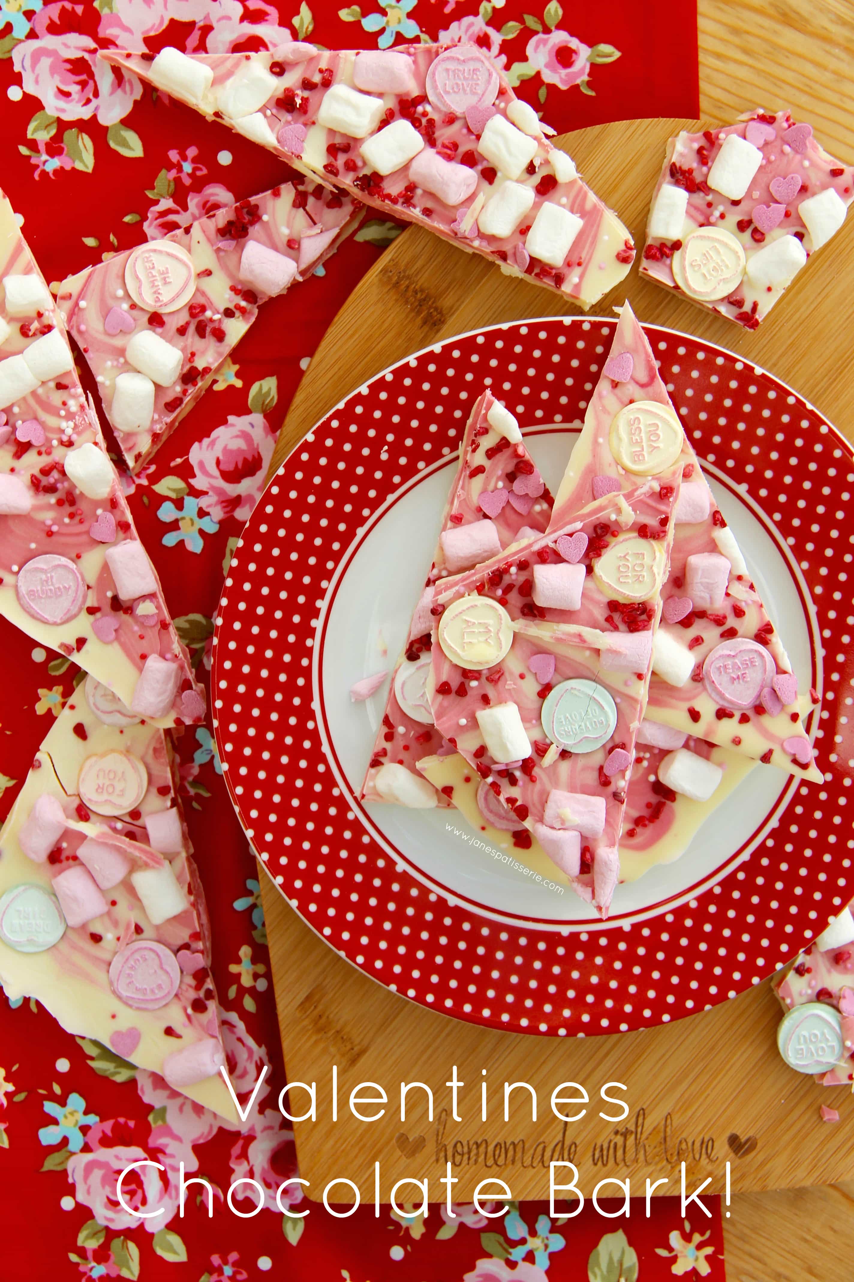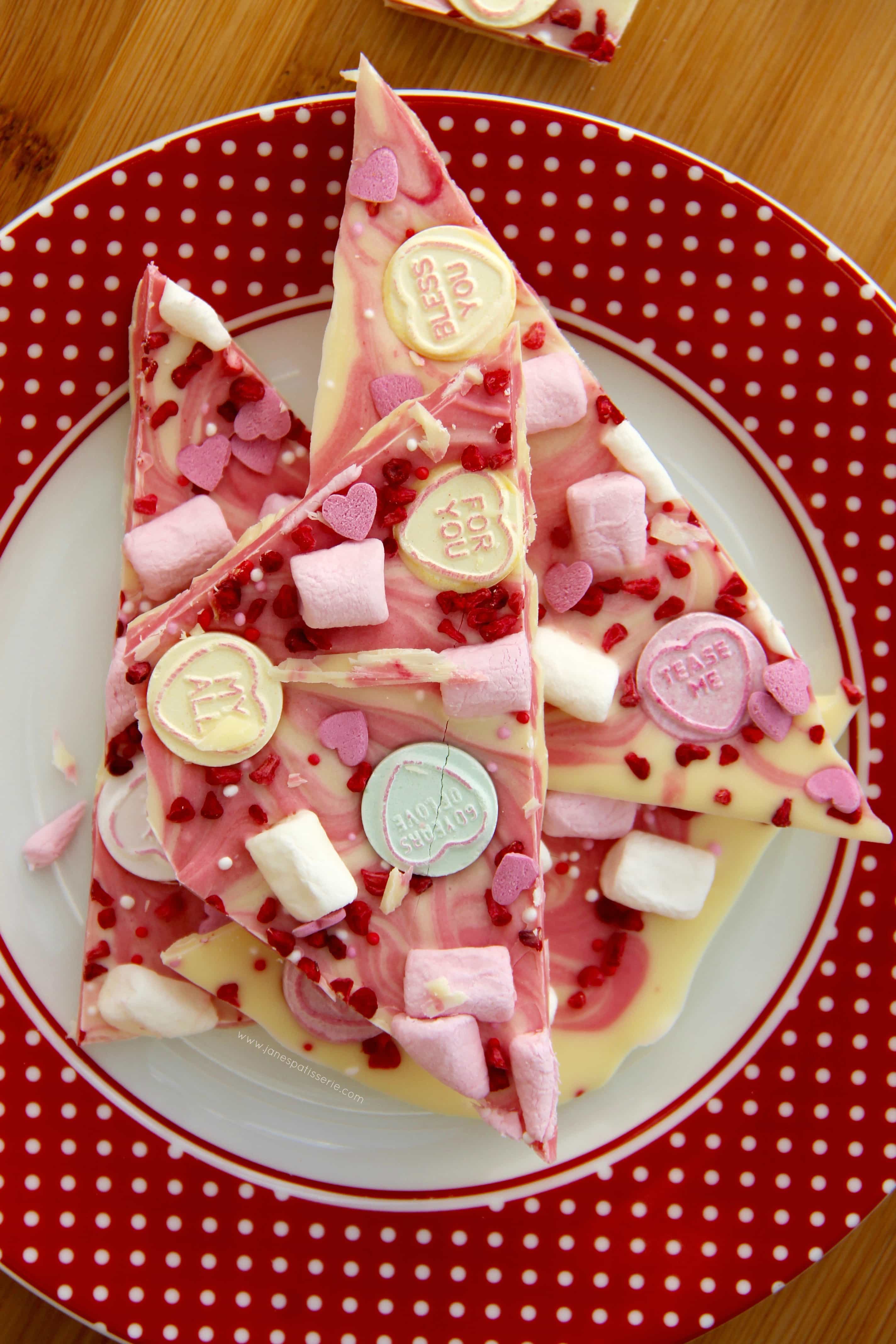 You can obviously use whatever chocolates you want, or even what sweets you want, but I feel the white chocolate is the best to change colour, and looks best for valentines! This recipe honestly is utterly delicious, like my Chocolate Bark, Halloween Bark, Christmas Bark I am addicted to it – so enjoy, I know you will be too!
