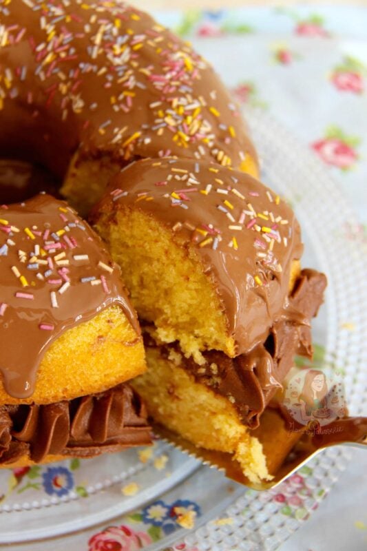 I bought my mould HERE, and I am so glad I did, I love the idea of a giant doughnut… obviously though, this doughnut is not deep fried like regular doughnuts as I don’t own a deep fryer big enough, and baking the cake makes it light & moist.