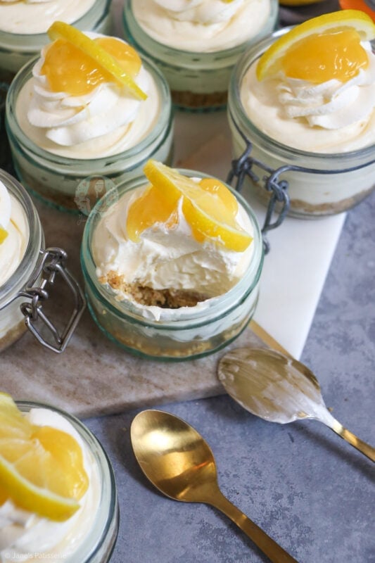 If you are feeling you want something with a bit if chocolate involved, try my Mini Chocolate Orange Cheesecakes or my Mini Chocolate Chip Cheesecakes. May not be in jars like the lemon ones but still mini and still delicious. You can switch the flavour of cheesecake to a different citrus if you prefer, or even make a mixture – but thats entirely up to you.