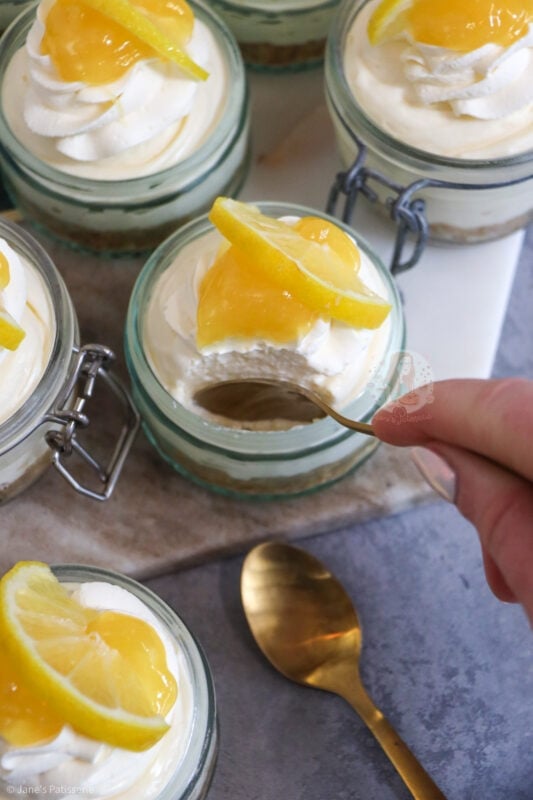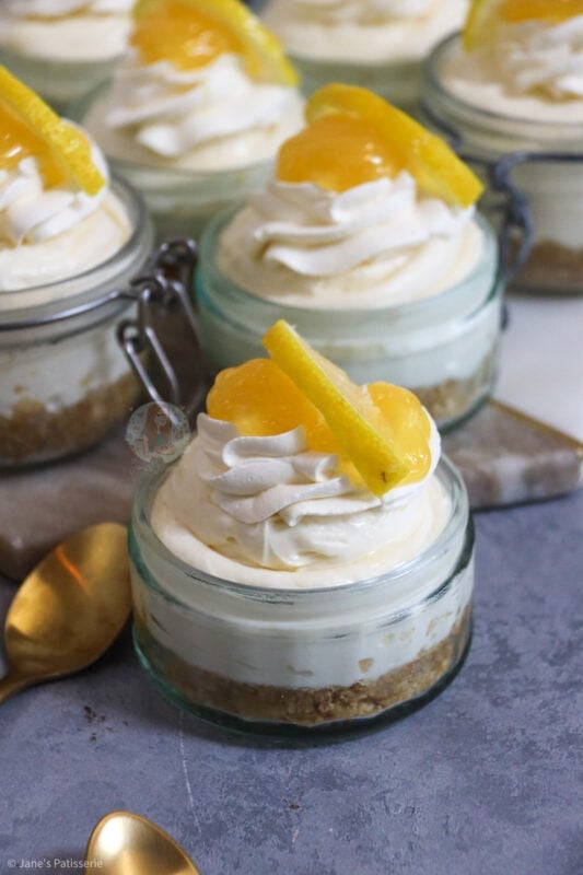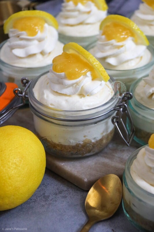 I decided to put on an extra little dollop of lemon curd and then a slice of lemon. Of course, you can decorate a cheesecake like this however you want, or even just leave them plain if you prefer and just want to be able to eat the cheesecakes quicker; I don’t judge.