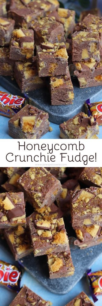 - I quickly fold through the Crunchies into the fudge mixture because the chocolate coating of the honeycomb bars will start melting slightly, but the actual honeycomb should be fine so no real need to worry about the mixture being too hot on this particular recipe.