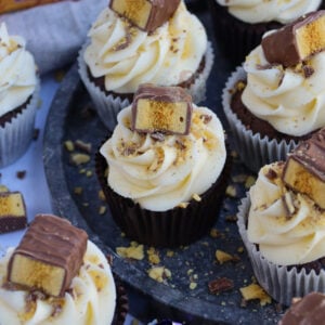 Chocolate cupcakes, honey buttercream frosting, and cadbury’s crunchie bars… Hello honeycomb crunchie cupcakes!