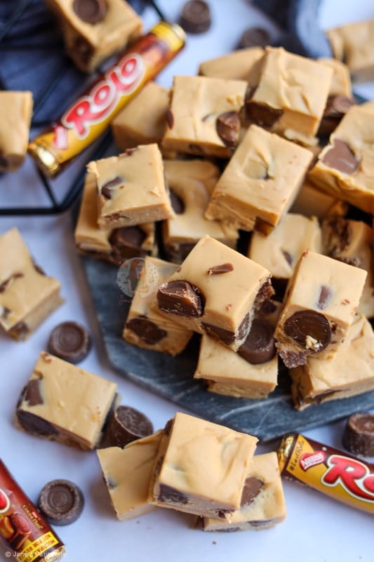 Simple, easy and utterly delicious 3-ingredient caramel rolo fudge! No sugar thermometers, no boiling, just quick & easy!