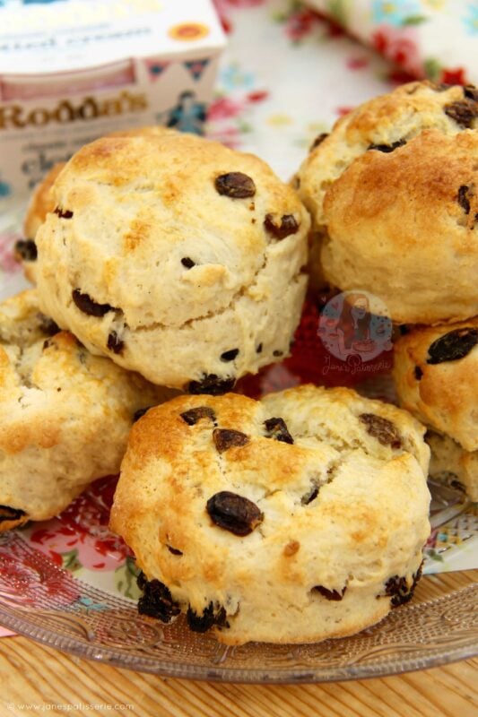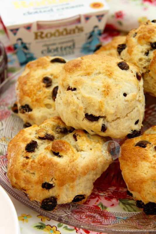 I always always always serve my scones with clotted cream. I then either add in fresh strawberries for example, or jam, but clotted cream is a MUST. I use Rodda’s clotted cream because it’s just perfection, and suits a fresh scone ideally.