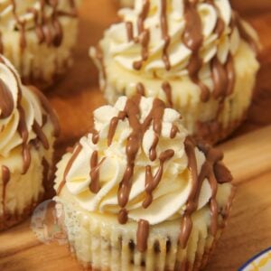 Individual and Mini Chocolate Chip Cheesecakes that Everyone Will Love – Gooey Chocolate Chips, Baked Vanilla Cheesecake, with Cream & a Chocolate Drizzle!