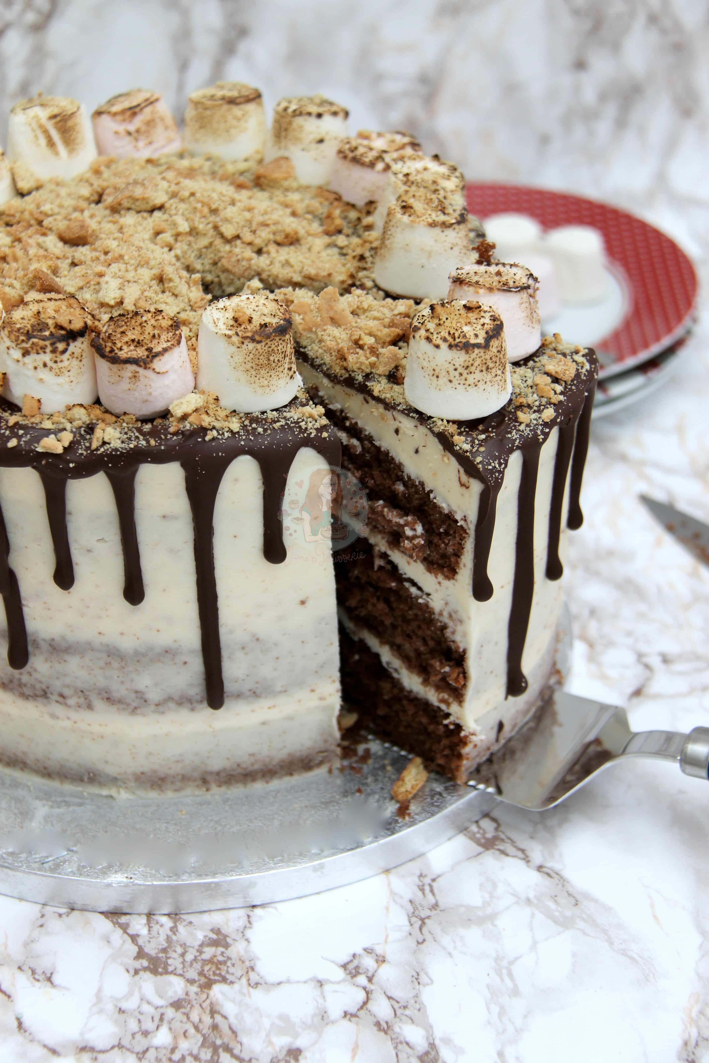 I’ve been wanting to make a S’mores Cake for a good while now, but I knew I should wait till Autumn and Halloween/Guy Fawkes time to post it. Bonfire Night is great, and I always make an awkward UK version of S’mores with Digestives, but it’s still damn delicious.