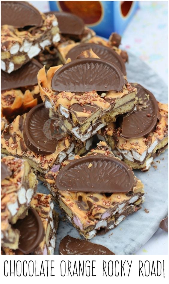Chocolate, Orange, Biscuits, Marshamallows, Matchmakers and more.. The Perfect Terry’s Chocolate Orange Rocky Road!