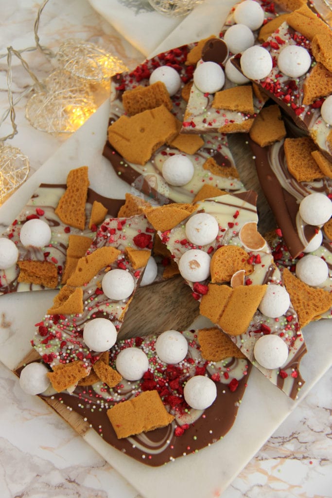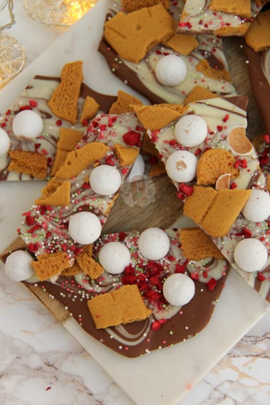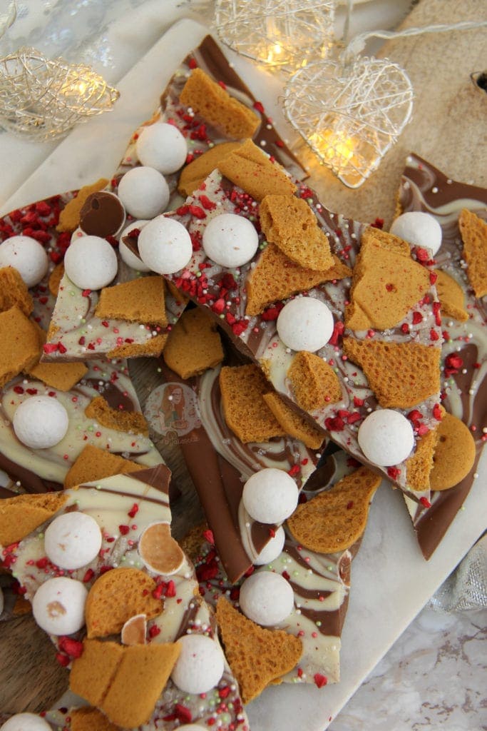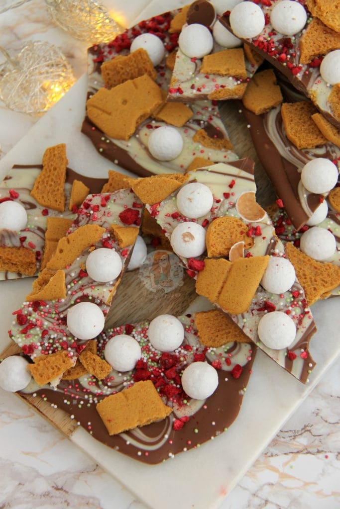 The greatest thing I find with chocolate bark is how you can swap flavours, add extra flavours – you can literally top the chocolate slab with anything. I have plenty of themed chocolate bark recipes on my website from Halloween to Bonfire and Valentines day.