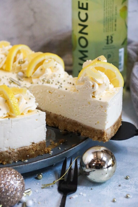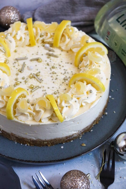 Buttery biscuit base, alcoholic lemon cheesecake with a zesty decoration… what could be better than a Limoncello cheesecake for the New Year?!