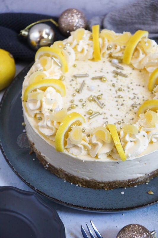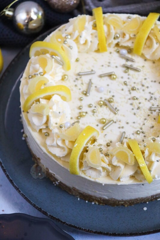 - Arrange some fresh lemon slices and some jelly lemons around the cheesecake. Sprinkle on some lovely little sprinkles and you’re done! Enjoy!